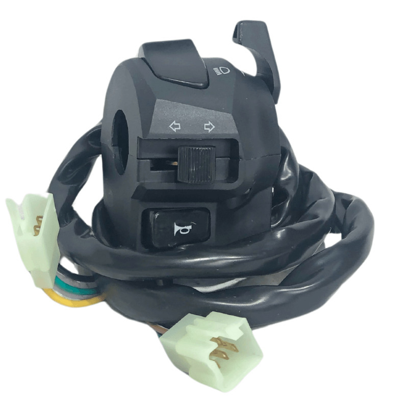 - Incluye: Conjunto de interruptores para luz alta/baja, direccionales y claxon; puede incluir passing switch según el diseño.